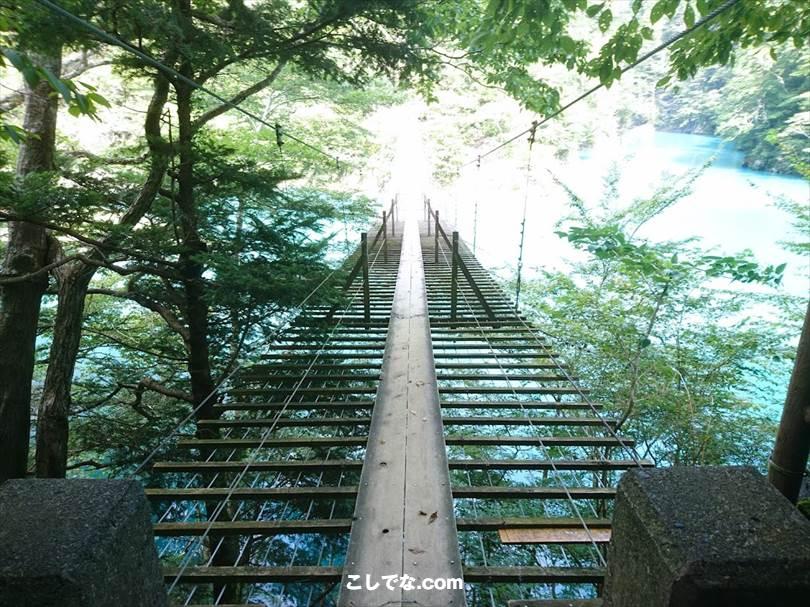 バイクでも渡れる吊り橋の上で不意をつかれた表情のリン。