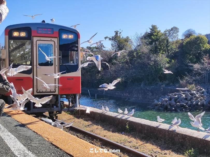 冬は佐久米駅のホームで『ユリカモメ』が見れることで有名。