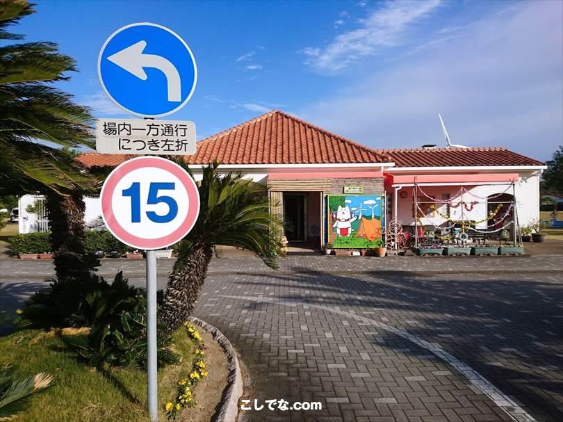 『しまりん』が渚園キャンプ場で受付をしているシーンです。